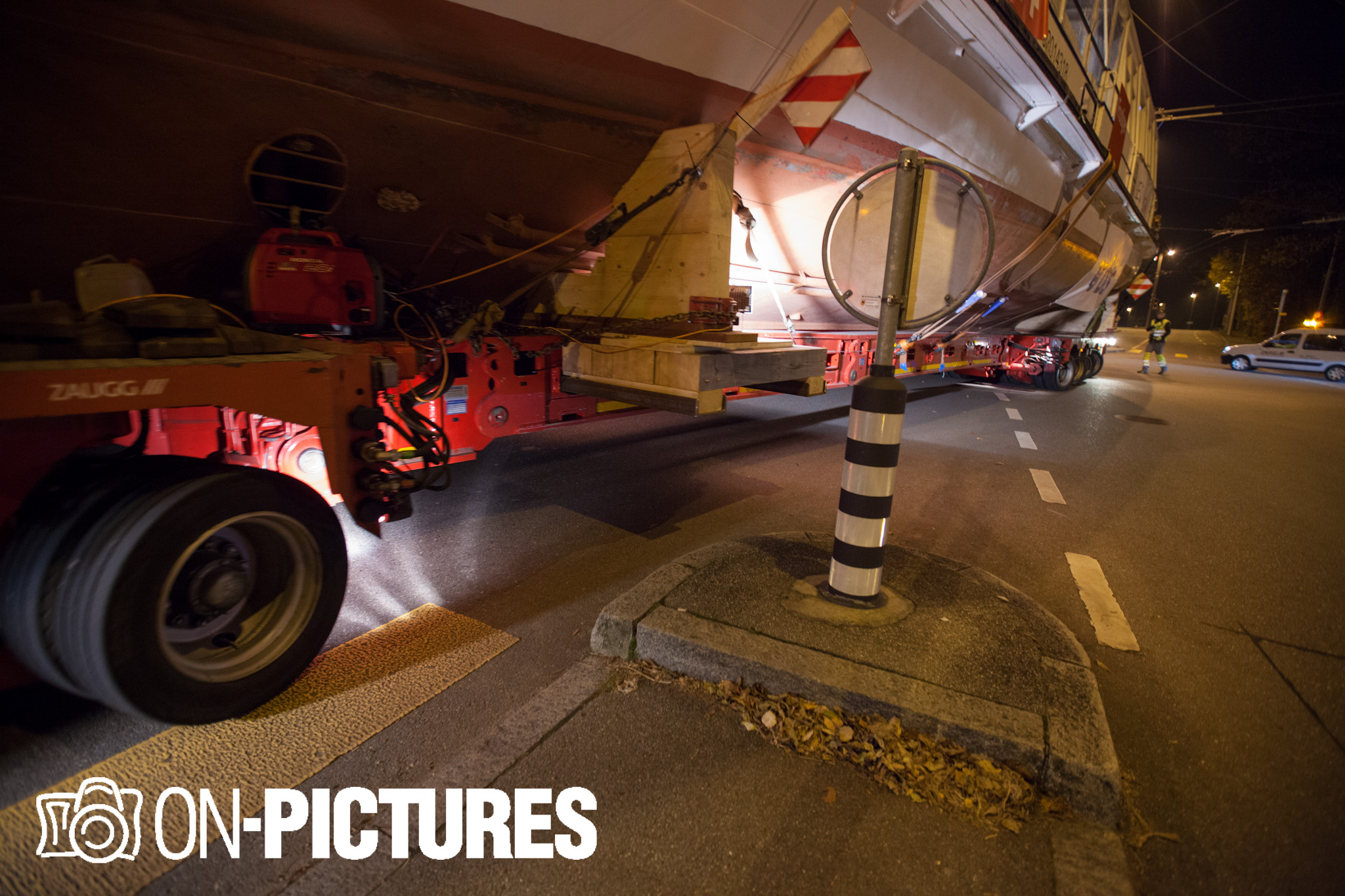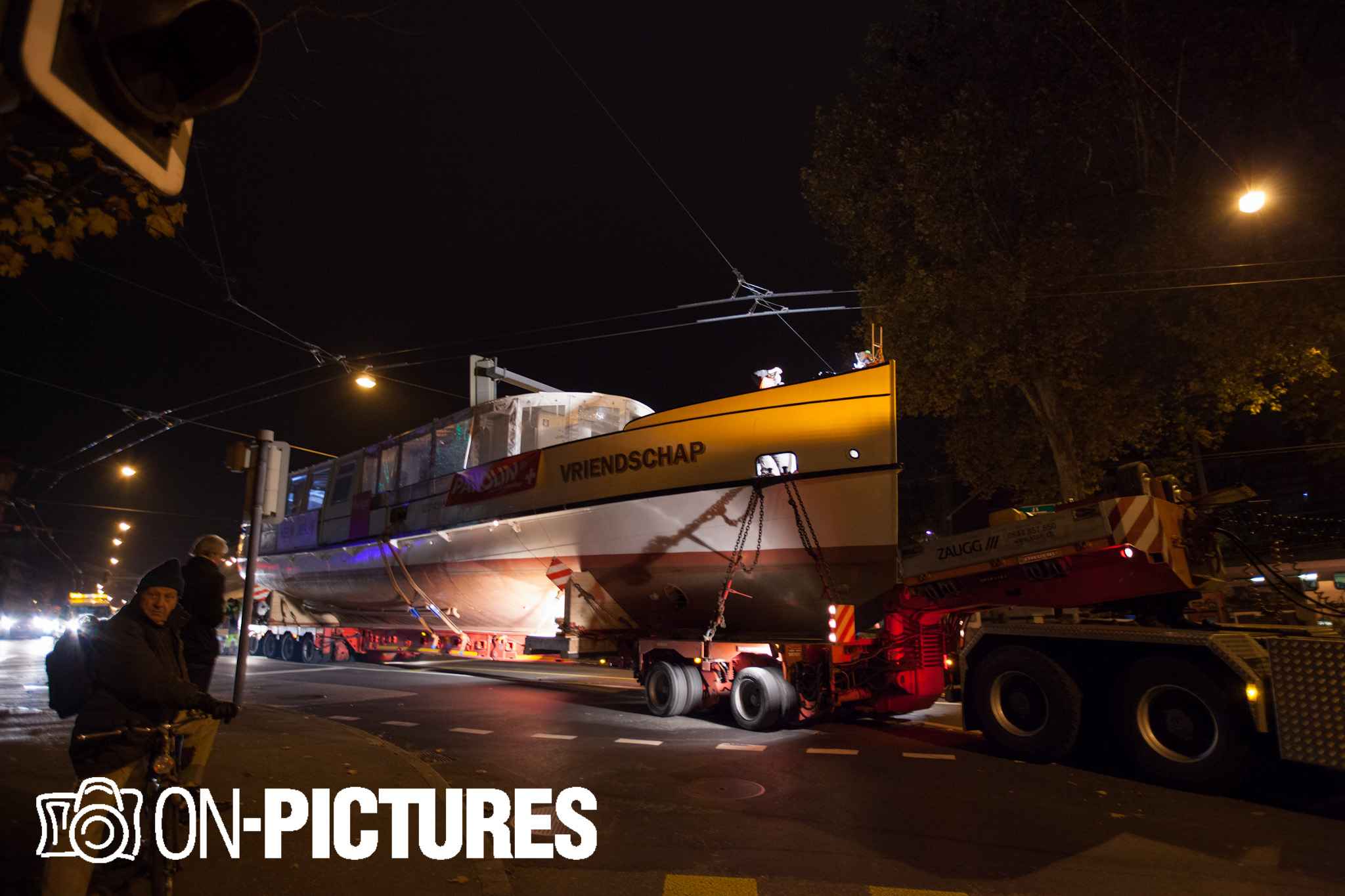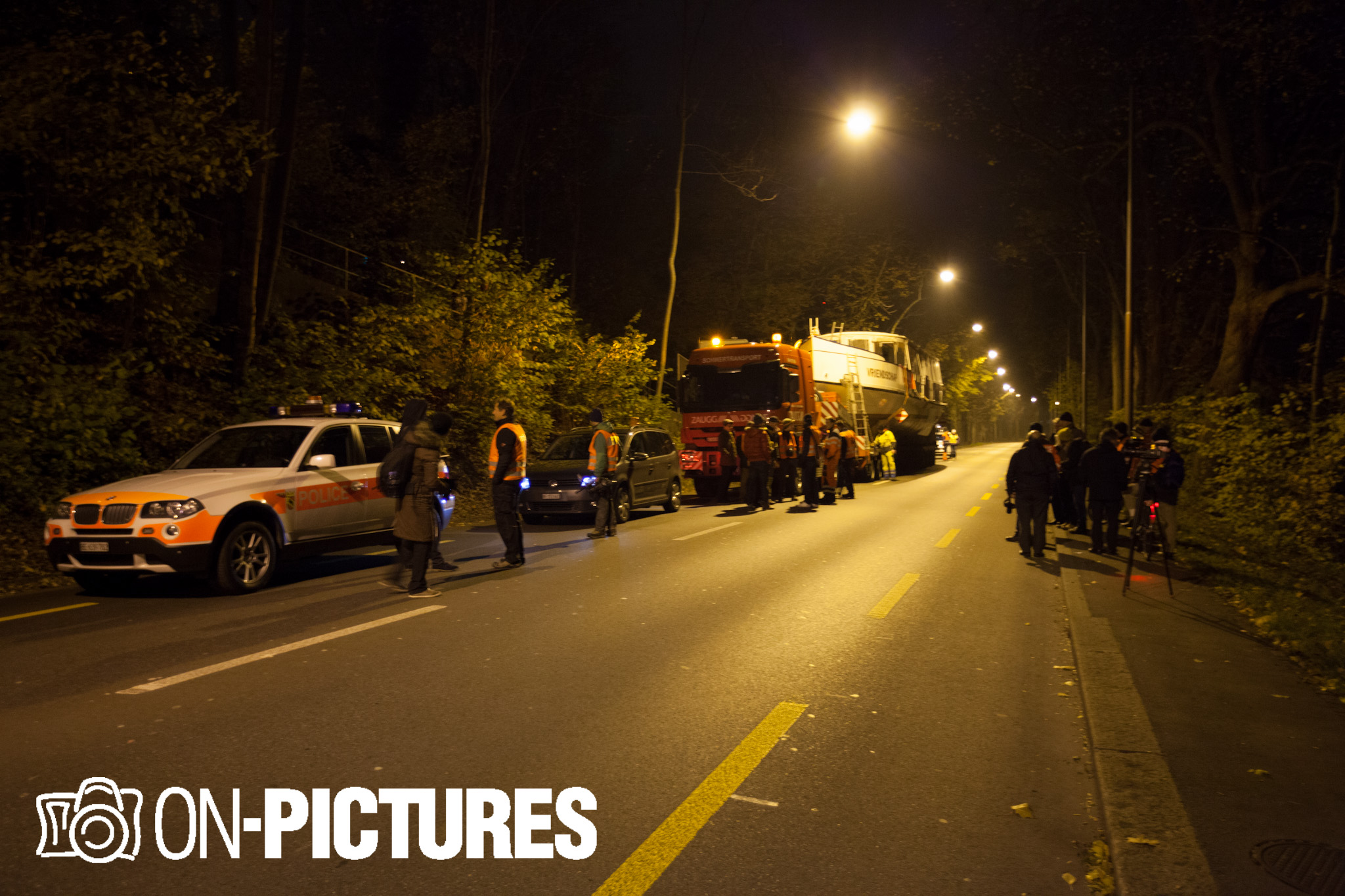 Begleitet wurde das 25,5 m lange und 4,6 m breite Motorschiff, welches im Volksmund liebevoll „Oberhofnerli“ genannt wird, von 2 Polizeifahrzeugen sowie von Begleitfahrzeugen der Transportfirma Zaugg. Die Route wurde so gewählt da der Aufleger mit dem Schiff eine Höhe von 5,3 Meter hat und so bei keiner Brücke durchkommt.